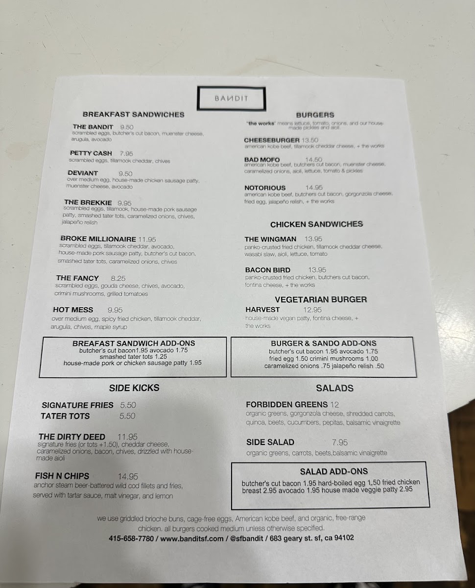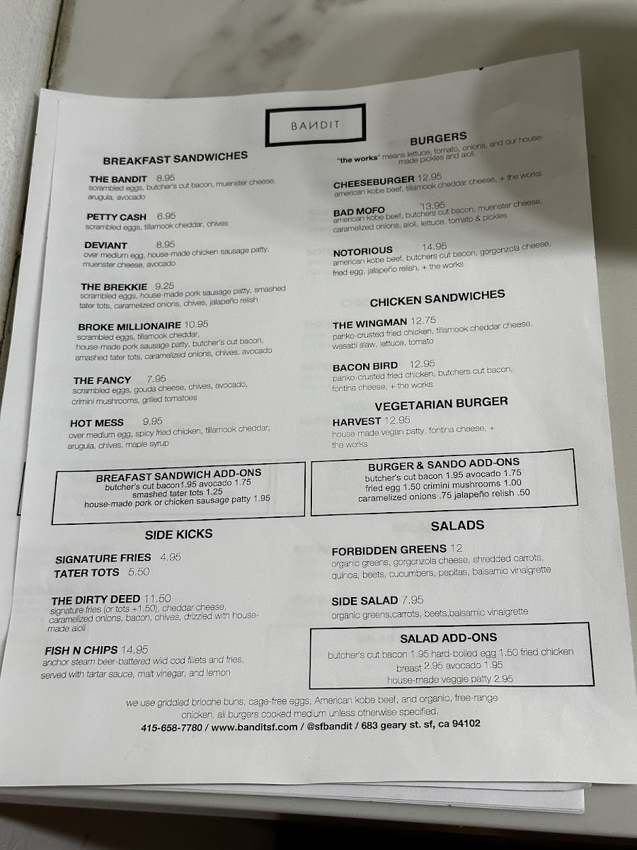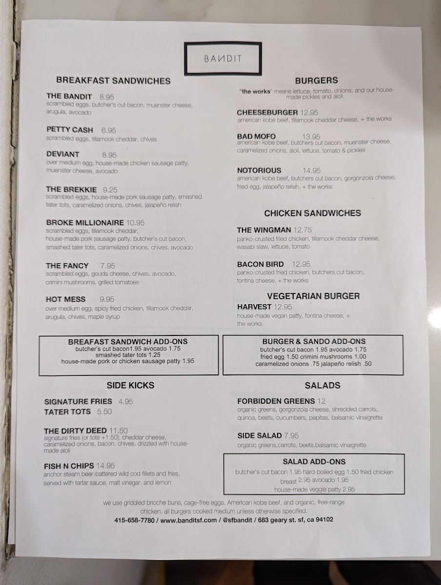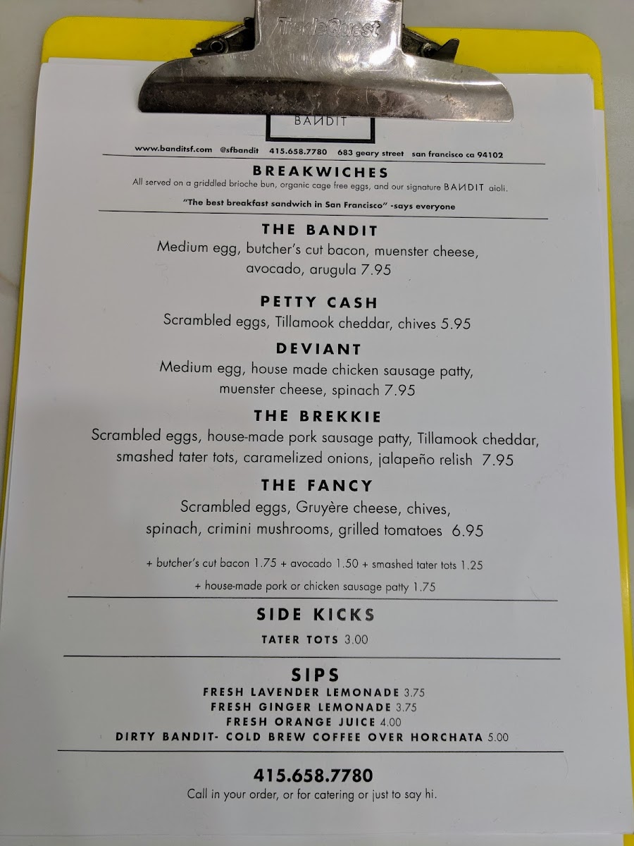 Welcome to Bandit, a hidden gem on 683 Geary St, San Francisco, CA 94102, renowned for transforming the ordinary breakfast into an extraordinary experience. This vibrant breakfast restaurant offers a delightful mix of hearty flavors and fresh ingredients that elevate traditional breakfast fare to new heights.